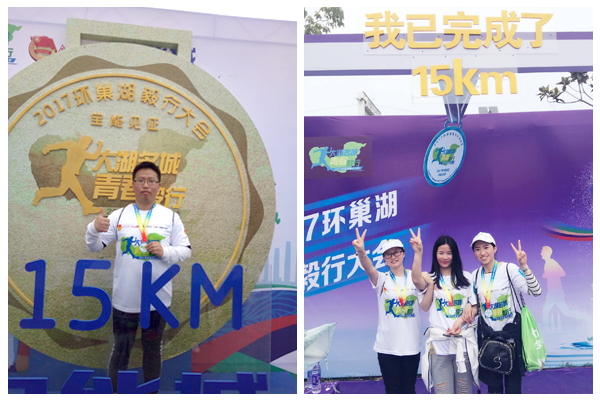 在40KM黄麓镇终点处,队员张晓珊、张佳佳携手为荣事达拔得头筹,在接受记者采访时说道:“环巢湖毅行不仅磨练了我们意志,同时也传递了绿色健康的生活方式,希望每一位毅行者能将这些理念融入生活,保持健康身心!”