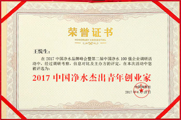- 热烈祝贺荣事达水工业公司总经理王悦生获评“2017年中国净水杰出青年创业家”