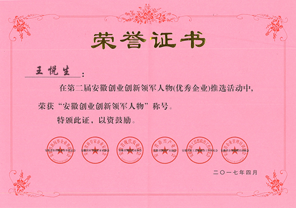- 热烈祝贺荣事达水工业公司总经理王悦生获评“安徽创业创新领军人物”