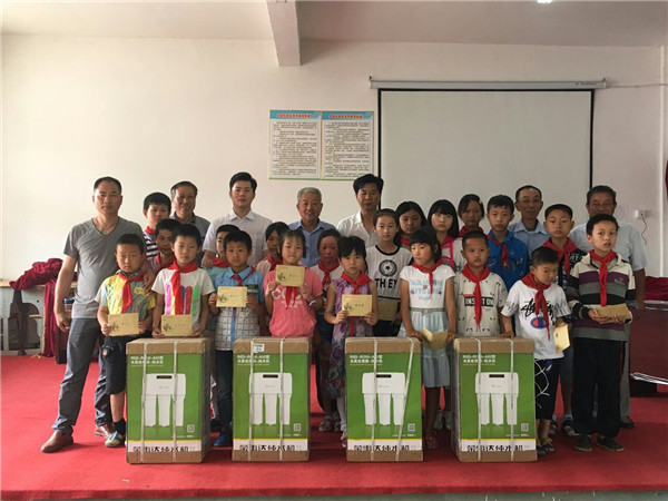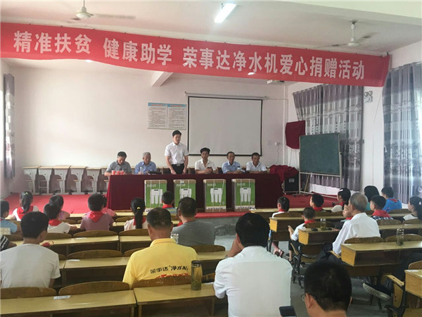 6月2日,“精准扶贫 健康助学 荣事达净水机爱心捐赠活动”于安徽望江县顺利开展。荣事达水工业公司联合当地经销商为望江县毛安中心学校、新坝中心学校、武昌小学等多所学校多所学校捐赠净水设备,并向20名特困学生捐赠了助学款,以改善学生们的饮水及生活条件。