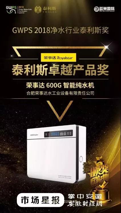 荣事达纯水机荣获“泰利斯卓越产品奖”