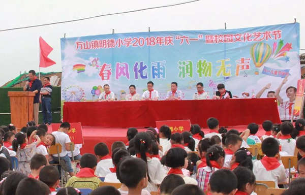 5月31日,荣事达“乐享净水”健康助学团携手春雨助学中心走进安徽庐江县万山镇明德小学捐赠多台净水设备、爱心物资及贫困助学金,为孩子们送去“六一”特别礼物。
