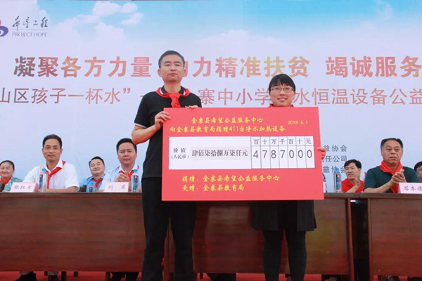 “六一”儿童节这一天,金寨县的孩子们收到了极有意义的礼物。共青团金寨委员会、金寨县希望公益服务中心、荣事达水工业集团共同发起的“给山区孩子一杯水”——金寨中小学净水恒温设备公益项目捐赠仪式在金寨金江实验学校落幕,至此,持续两年、覆盖全县所有中小学校的净水恒温设备公益项目画上圆满句号。该公益善举得到了社会各界爱心人士的积极参与,受到学生、学校、家长们的一致好评,被全国文明办评为“全国百佳公益项目”。