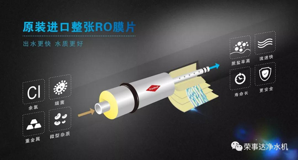 荣事达专注净水十三年,向来以出众的净水效果闻名。此次400G智能反渗透净水机融入五层净化系统、高品质椰壳活性炭滤芯等诸多先进工艺,尤其是在核心配件RO膜的选择上,采用原装进口整张RO膜片,性能远远超于市面上的碎膜压制RO膜,净化效果更佳,可充分去除水中余氯、细菌、重金属等有害物质,出水可达直饮标准。