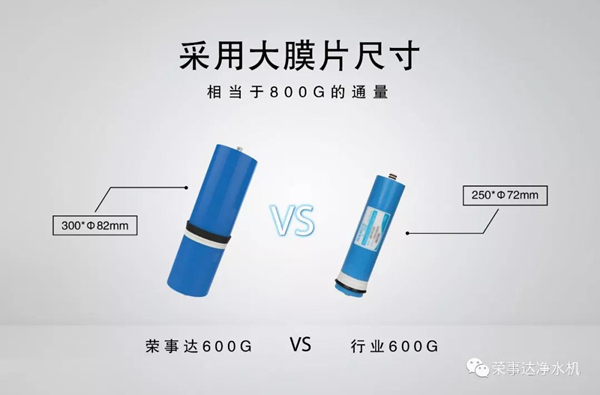 对于净水机配件的选择,荣事达一直是认真的。此次600G智能反渗透净水机在核心部件RO反渗透膜的挑选上,就直接摒弃市场上主流的常规RO膜滤芯,采用专业定制化滤芯。 300Xφ82毫米独特大膜片搭配专业卷膜技术,性能更为出众,600G滤芯相当于800G滤芯通量,制水速度快,同时可充分净化余氯、细菌、重金属等有害物,出水可达直饮标准。Simple.至 简