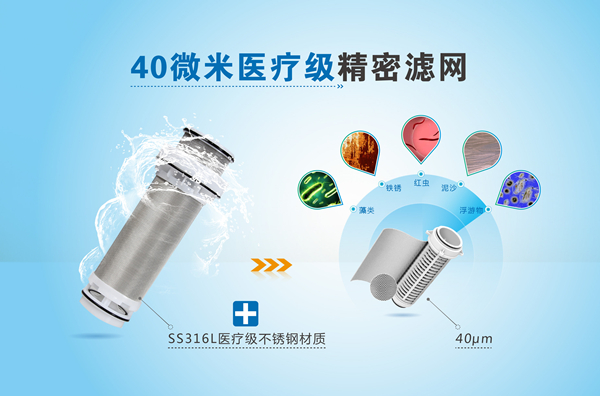 荣事达对于配件的优化不止于此。为保证其拥有更高效的净水能力,五款智能前置过滤器摒弃市场上大多使用的90、100微米滤网,选择过滤精度更高的40微米精密滤网,可以充分拦截水中红虫、铁锈、泥沙、悬浮物等杂质,其独特的SS316L医疗级材质,进一步保证使用放心。此外,超大定制滤网出水速度快,其中第六代新品滤网展开面积是普通前置过滤器的3倍以上,出水流量能够达到8吨每小时,可满足更多用水需求。