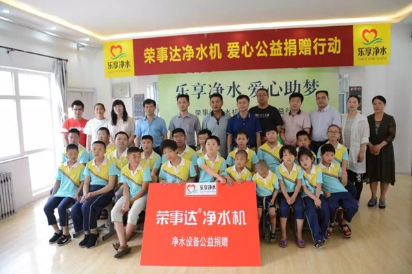 2018年6月1日,荣事达走进红色革命老区——金寨县,携手金寨希望公益服务中心及地方公益协会共同发起“给山区孩子一杯水”——援建金寨中小学净水设备公益活动。荣事达通过工程援建和设备捐赠的方式,为金寨县所有中小学援建直饮水系统400多套,受到学生、学校、家长们的一致好评。该项目被全国文明办评为“全国百佳公益项目”。