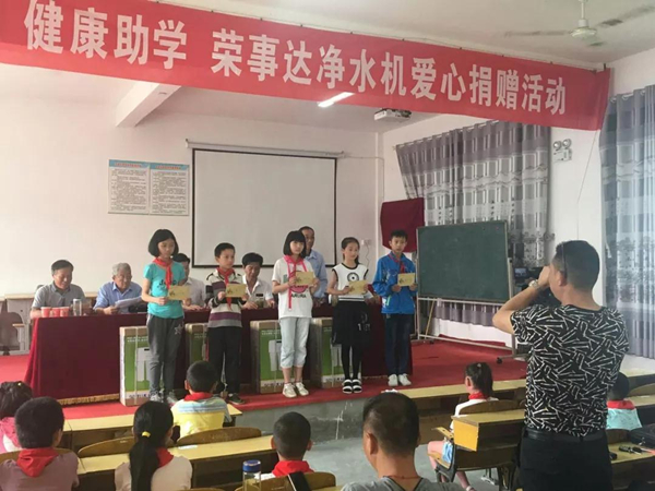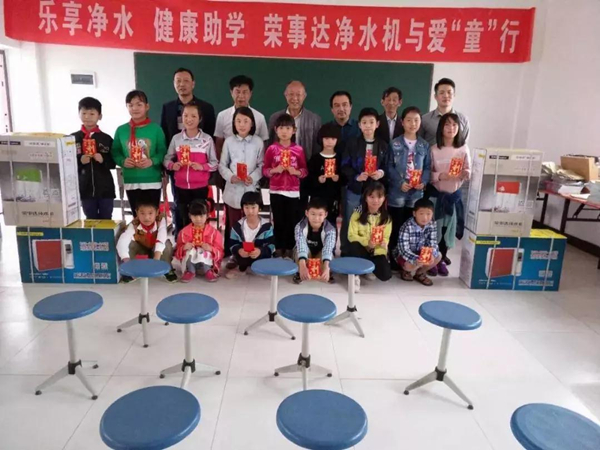 为了解决贫困地区孩子们的饮水安全问题,自2011年起,荣事达发起“乐享净水·健康助学行动”,通过向贫困地区学校免费提供直饮水设备、援建校园直饮水工程、开展健康知识讲座等志愿服务,让青少年儿童喝上健康卫生的饮用水,同时树立科学的饮水理念,帮助孩子茁壮成长。助学活动开展以来,荣事达志愿服务团队已遍及安徽、江苏、陕西、江西、河南、河北等多个地区,捐赠、安装净水设备数千套,受益师生群体庞大,社会反响空前。