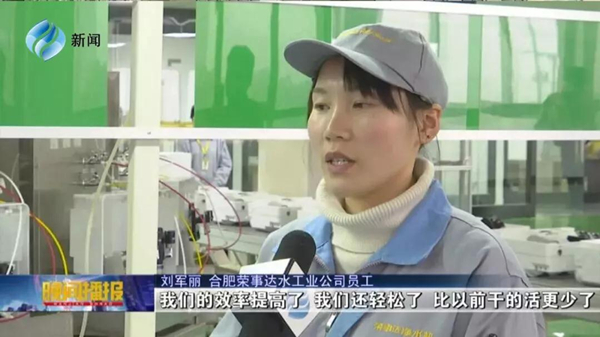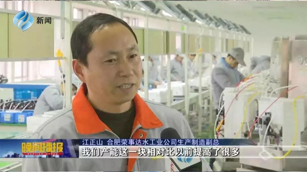 2月13日晚21时30分,合肥新闻频道《晚间播报》节目播出新闻《人勤春来早 新车间开启新目标》,荣事达水工业公司作为本土知名企业,在新春伊始全面开启生产模式,公司全新投入使用的全自动智能化生产线、检测线上已是一片忙碌景象。