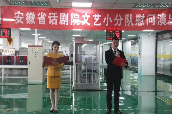 安徽省话剧院成立于1953年,几代话剧人秉承文艺为人民服务的宗旨,薪火相传,不断开拓文化艺术领域,为我省文化事业做出了突出贡献,丰富着人民群众的艺术生活。为更好地关心职工群众生活、加强和创新地区企业文化发展、构建和谐劳动关系,安徽省话剧院开展“文艺轻骑兵全省巡演”活动,走进广大基层企业。2月25日,由安徽省话剧院段晓波院长、黄磊院长带领的巡演文艺小分队走进荣事达水工业集团进行慰问表演,并带来了多个精彩纷呈的艺术节目。