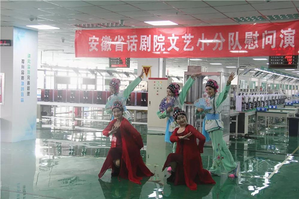 爵士舞《我的新衣》、歌曲《相亲相爱》、朗诵《城市的描绘师》、团舞《欢聚一堂》、创意近景魔术、特色黄梅戏等形式多样的精彩节目将传统艺术与现代艺术创新融合,扬时尚蓄古韵,给人以耳目一新的全新视听体验,赢得了大家的连连掌声。值得一提的是,生产制造中心总经理孙晓峰参与了黄梅戏的互动表演,孙总嘹亮专业的唱腔,台下观众无不为其喝彩。表演过后,大家仍意犹未尽,津津乐道。技术员小王说道:“这次表演我感受到了政府和安徽省话剧院对我们普通职工群众的关怀,心里很暖,可以鼓足干劲投入工作了。”