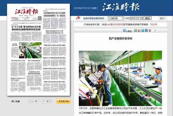安徽财经网 《荣事达“绿色制造”忙出口 净水设备畅行“一带一路”》