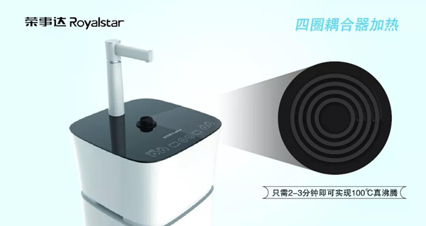 作为一款高品质家庭直饮机,荣事达智能净饮一体机在加热方面也可随时满足用户的直饮需求。该产品配置最新四圈耦合器加热系统,只需2-3分钟即可达到100℃煮沸状态,让用户享受便捷的饮水生活。