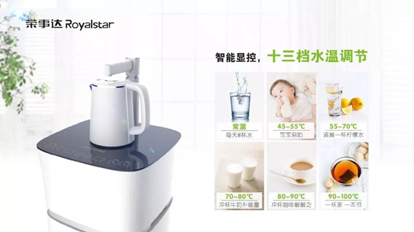 不同的生活场景对于水温的需求也各不相同。传统饮水机多为常温水和热水双重选择,使用限制较大。为提升产品的人性化体验,荣事达智能净饮一体机采用十三档可调节水温设定,每5℃一档,充分满足大众直饮、冲奶、泡茶等各类饮水需求,饮水生活更为丰富。