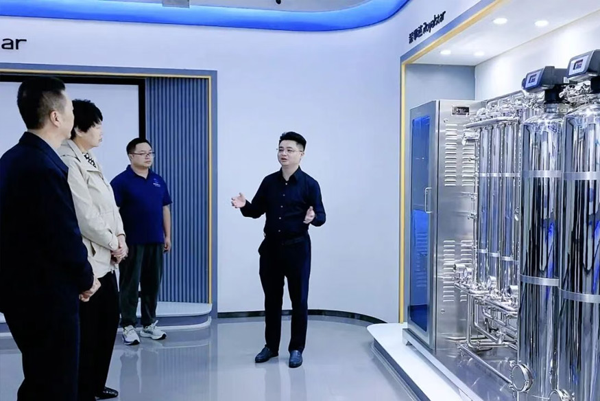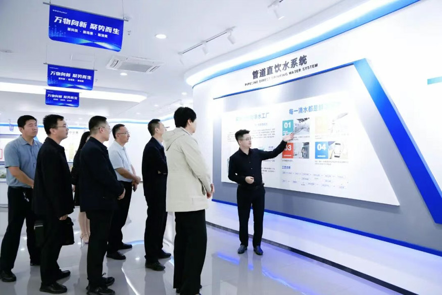 领导一行参观公司全屋智慧净水、管道直饮水、校园智慧饮水、单位/工厂直饮水等项目,了解公司在净水行业全领域的发展情况。