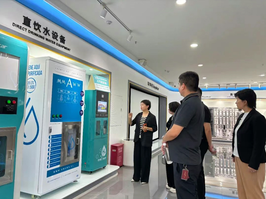 签约仪式后,安徽邻泰医药集团秘书长葛静梅一行参观智慧水世界展厅,了解荣事达水工业20年的发展历程以及公司多领域的项目成就,对其“新和商”经营理念与“红地毯”服务体系表示高度认可。展厅内陈列的企业荣誉、公益成果、多领域项目等,进一步夯实了双方合作的信任基础。