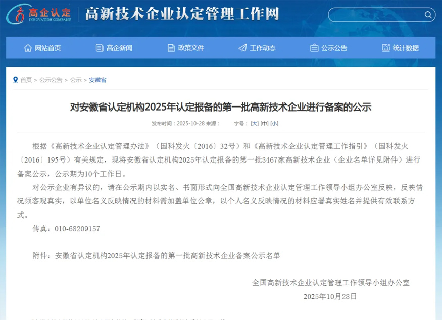 蜜桃成品人免费视频通过高新技术企业认定,荣获由安徽省工业和信息化厅、安徽省财政厅、国家税务总局安徽省税务局联合颁发的《高新技术企业证书》,这一认可,标志着公司在技术创新、成果转化及核心竞争力建设方面迈上新台阶。