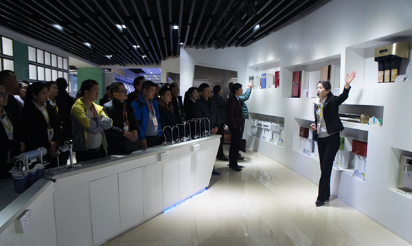 解说员还提到企业自主研发的双膜专利技术,一机实现净、饮双效,并现场为我们演示使用,“污水经净化由双龙头流出,一个日用一个饮用,饮用水可以直接喝!” 说着解说员便端起刚净化的饮用水直接喝下,前一秒的污水,后一刻就能直接饮用,引得我们众多参观者惊叹、鼓掌。当天,解说员还向我们普及了RO反渗透膜、五级净化系统等诸多净水知识,尤为专业的行业分析与产品解读,解答了我们许多问题,丰富了我们的认知。